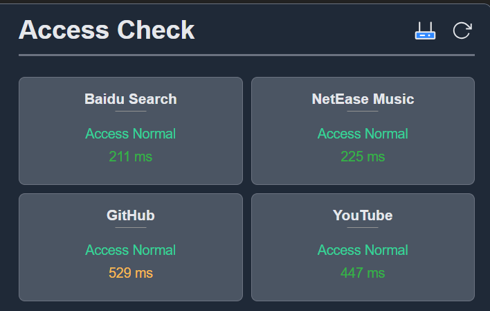 配置完成之后,openclash页面中的Access Check可以全部pass.