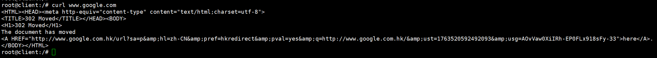 此时client可以正常访问www.baidu.com, 但是无法访问google.