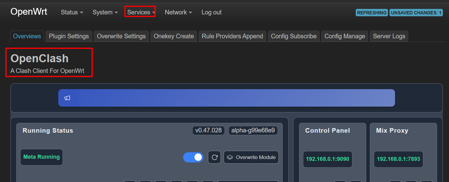 这个版本的openwrt中并没有直接集成OpenClash, 按照下面的命令进行安装。
